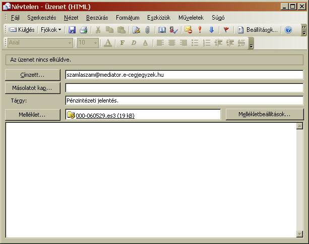 Az aláírás elkészítése után mentsük elektronikus aktánkat (főmenü --> E-akta --> E-akta mentése), majd küldjük el a byghhU5yyN5Nc3phbWxhc3phbUBtZWRpYXRvci5lLWNlZ2plZ3l6ZWsuaHU= címre (főmenü --> E-akta --> E-akta küldése levélként):